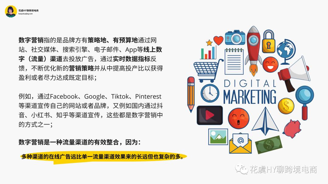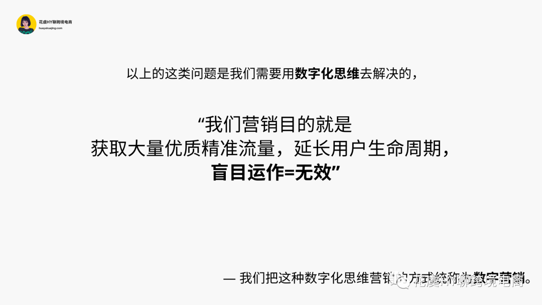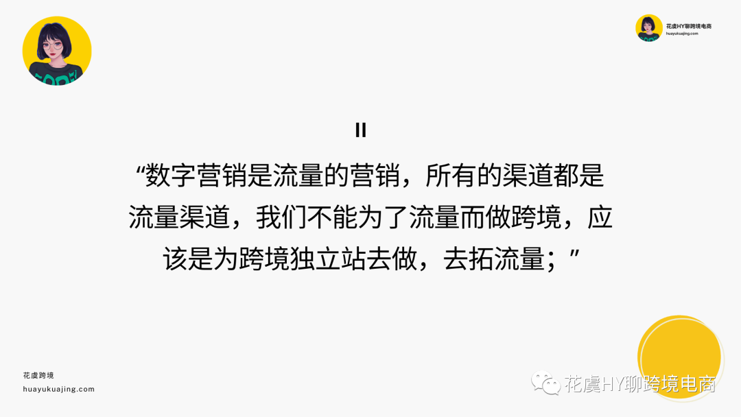 2.”数字营销是流量的营销,所有的渠道都是流量渠道,我们不能为了流量而做跨境,应该是为跨境独立站去做,去拓流量;”