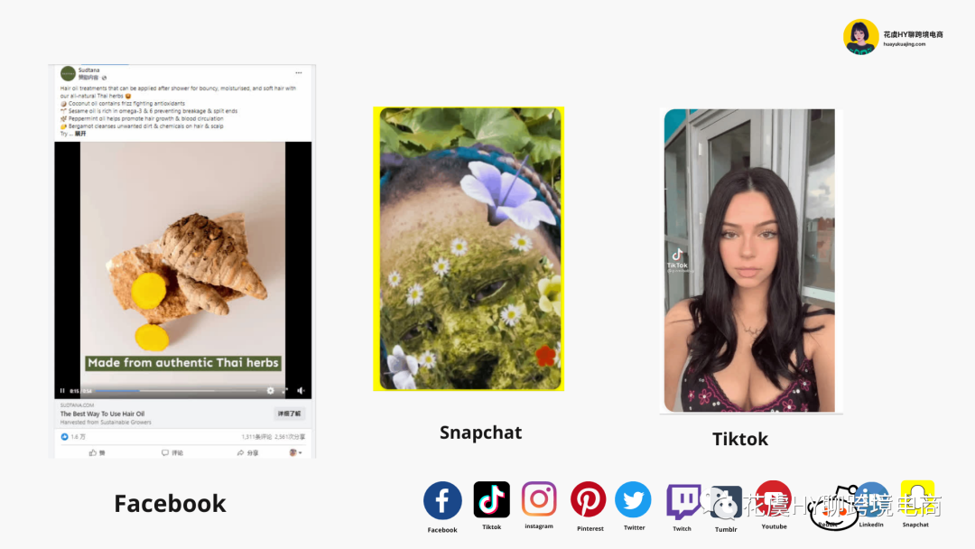 那在这些社交媒体渠道中,我们目前用的最多的就是Facebook、instagram、Pinterest、还有最近可见度越来越高的tiktok等等。