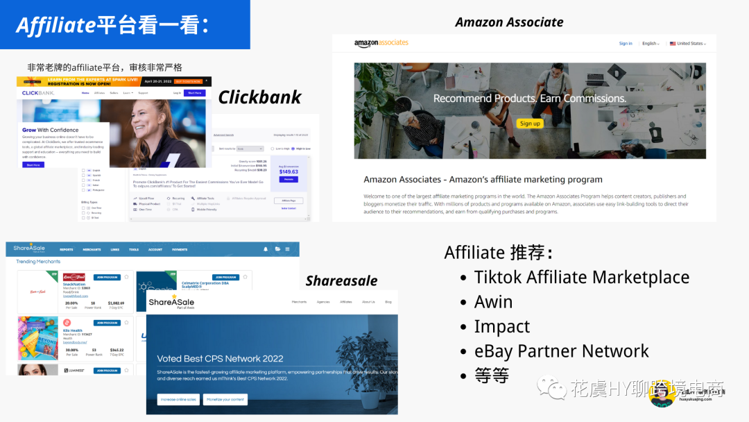 我们可以来看看一些比较有名的affiliate平台,例如clickbank,Amazon associate,shareasale等等,