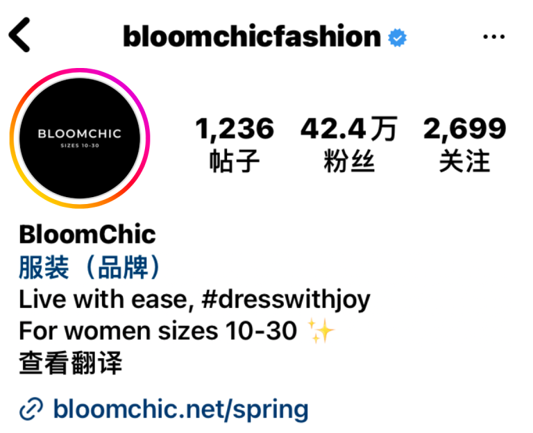 BloomChic在Instagram上拥有42万粉丝,账号内容以新品推广、红人种草、买家秀为主。