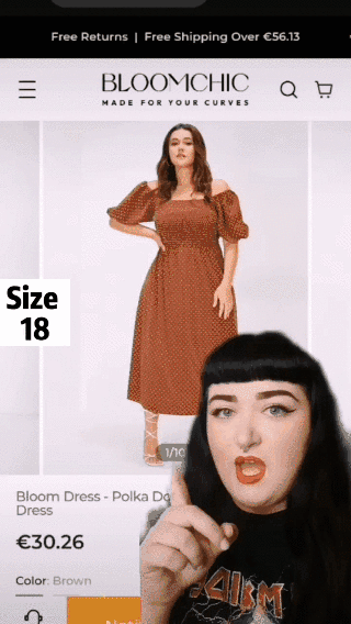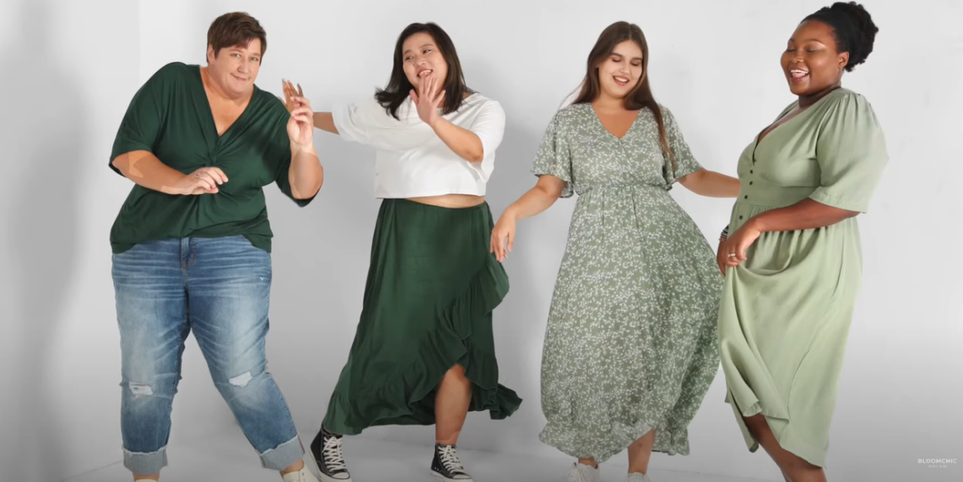 BloomChic也顺势将其作为营销亮点,在品牌发布的不少宣传视频中,真人大码模特会特别展示品牌裙装中的口袋设计。