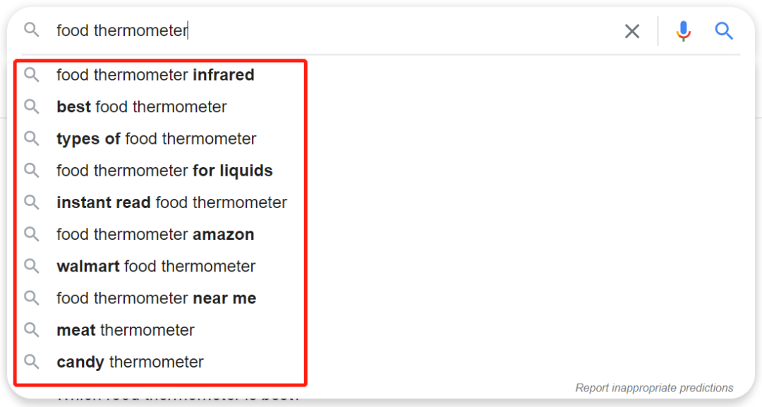 ● 同时,当你搜索关键词时,下拉框里的相关内容,也是客户比较感兴趣的主题