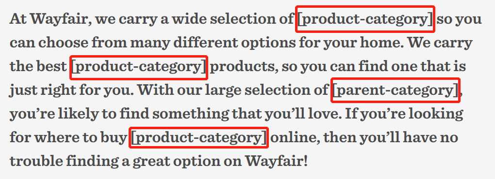 - 重复使用样板文字。例如电商网站成百上千的产品页面都重复显示运输、售后等具体条款。