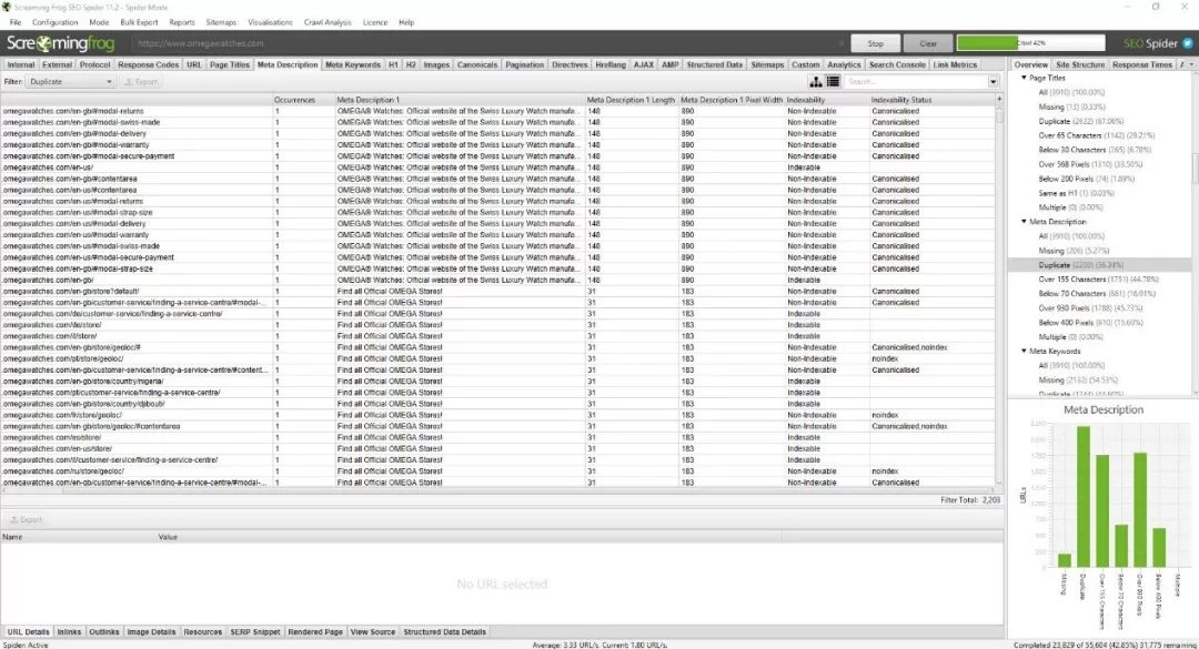 有需求就有市场,检测网站重复内容的工具越来越多,功能也越来越丰富。找到适合你的,才是最重要的。此处主要推荐模拟爬虫抓取工具,Screaming Frog作为市面上非常流行的模拟抓取工具,它可以帮助你迅速发现网站重复的title,description,h标签,url等信息,并批量导出报告,便于分析。当然,如果你正在使用同类型的抓取工具如Deepcrawl和Sitebulb,综合型SEO工具如Ahrefs和SEMRush,同样可行。