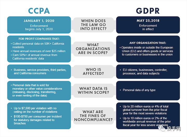 该法案要求公司披露他们收集的个人数据类型,允许用户选择不出售其数据,并根据要求删除用户数据。CCPA 还对不遵守该法案的公司处以巨额罚款。