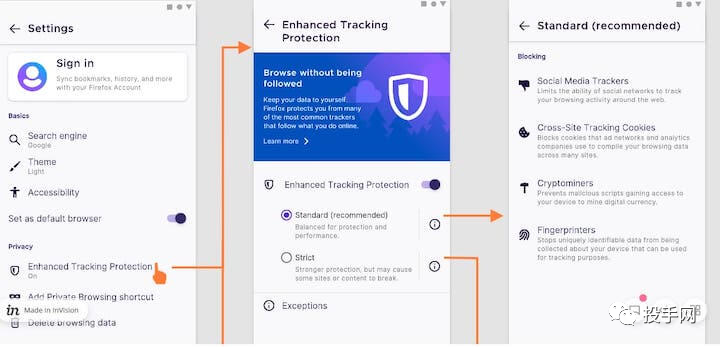 此外,ETP 还阻止指纹识别,这是一种用于根据独特的浏览器配置跟踪用户的技术。