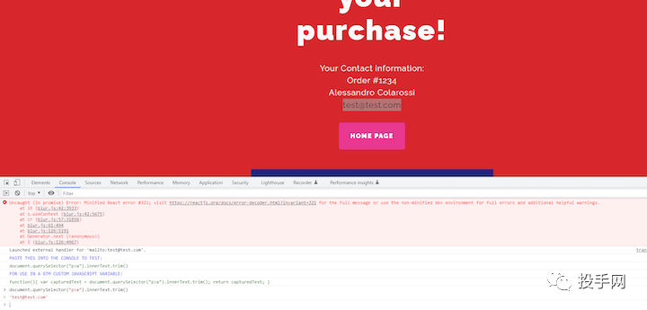 出于本文的目的,我将使用我制作的这个测试站点,您可以在此处的链接进行操作。假设这是电子商务商店的“订单确认页面”,我们可以使用我构建的Chrome扩展程序“抓取”电子邮件,可在此处免费获得。