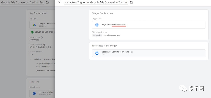 注意:这是假设 Google Ads 转化代码已在您的 GTM 帐号中运行。