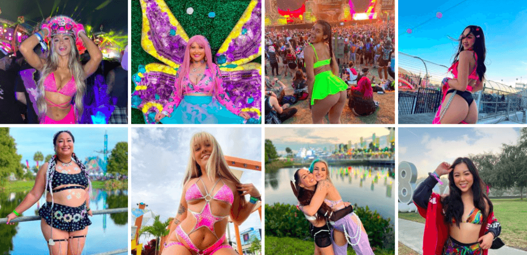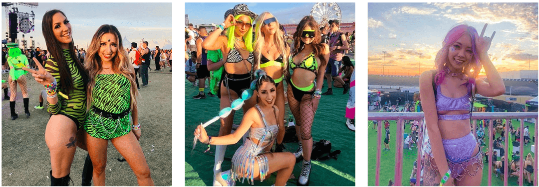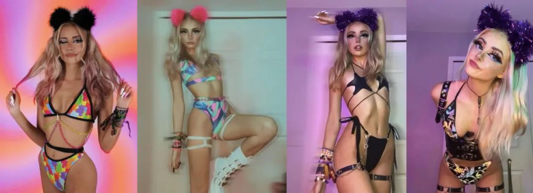 首先,她所有INS的发帖全都是电音服饰的穿搭(都是iHeartRaves赞助的),无一例外。而且是非常大胆暴露,十分符合iHeartRaves的品牌定位。