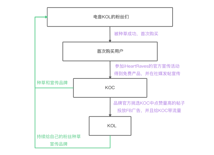 它可以做到年营收3000万美金,成为电音服饰行业的老大,都是因为其搭建了一套独特的“养成型”网红营销体系:自己大批量培养KOL,在养成的过程中不断利用这些KOL给该品牌背书、做曝光、做带货。