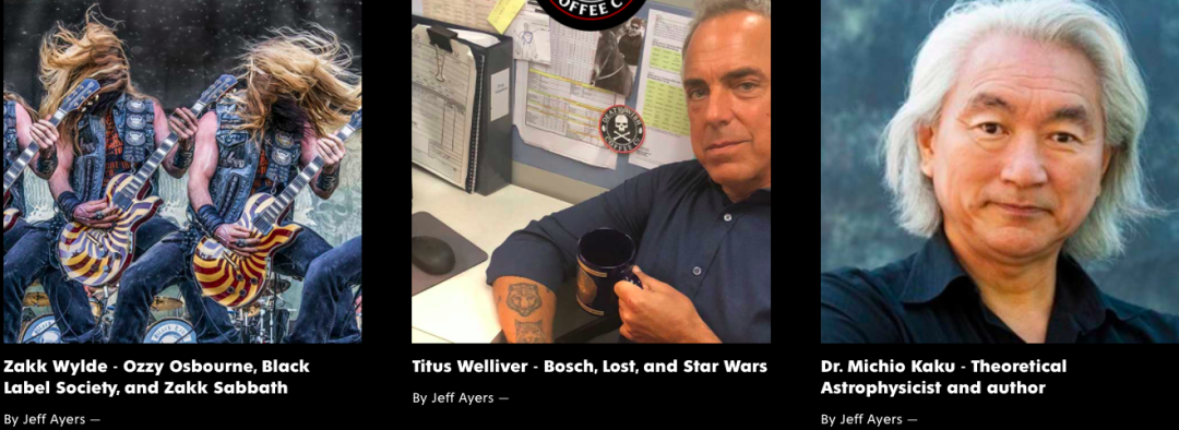 为什么能和NASA合作?原因就是它的创始人也在做一个大咖访谈,是一个播客系列 “Fueled By Death Cast”。其实就是邀请各行各业的咖啡重度爱好者来聊天。