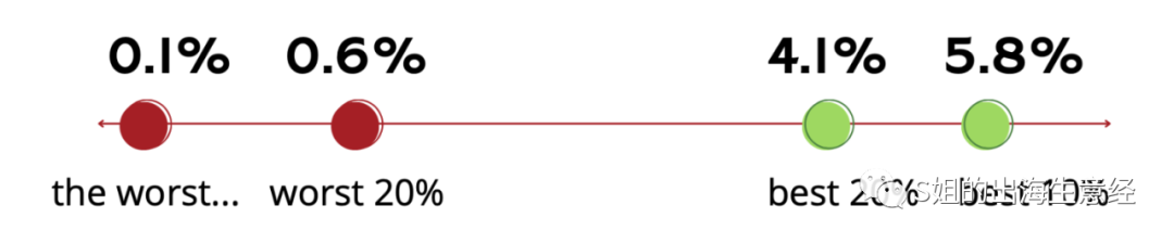 基于平均线1.9%, 警戒线是0.6%,可以做一个自查,如果转化率低于0.6%,证明有很大的进步空间。