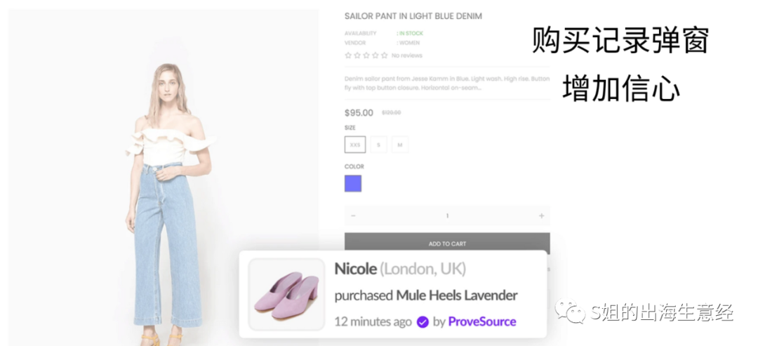 用插件实现购买记录小弹窗pop up,”angela刚刚购买了abc” , 大家都有从众心里。