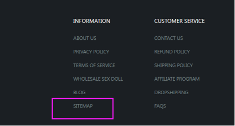在网站底部导航放置整个网站HTML站点地图链接,方便Google爬取网站页面,以及用户的实际搜索和访问。