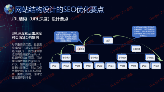 对于重要的页面,越靠近根域越好(其实就是URL深度越低越好),因为通常根域具有最高的PageRank,越靠近根域的页面,可能能获得更高的PageRank,所以,如果我们创建了一个重要的着陆页,那么我们尽量使得它的URL结构简单,更靠近根域,这样它更容易得到排名。