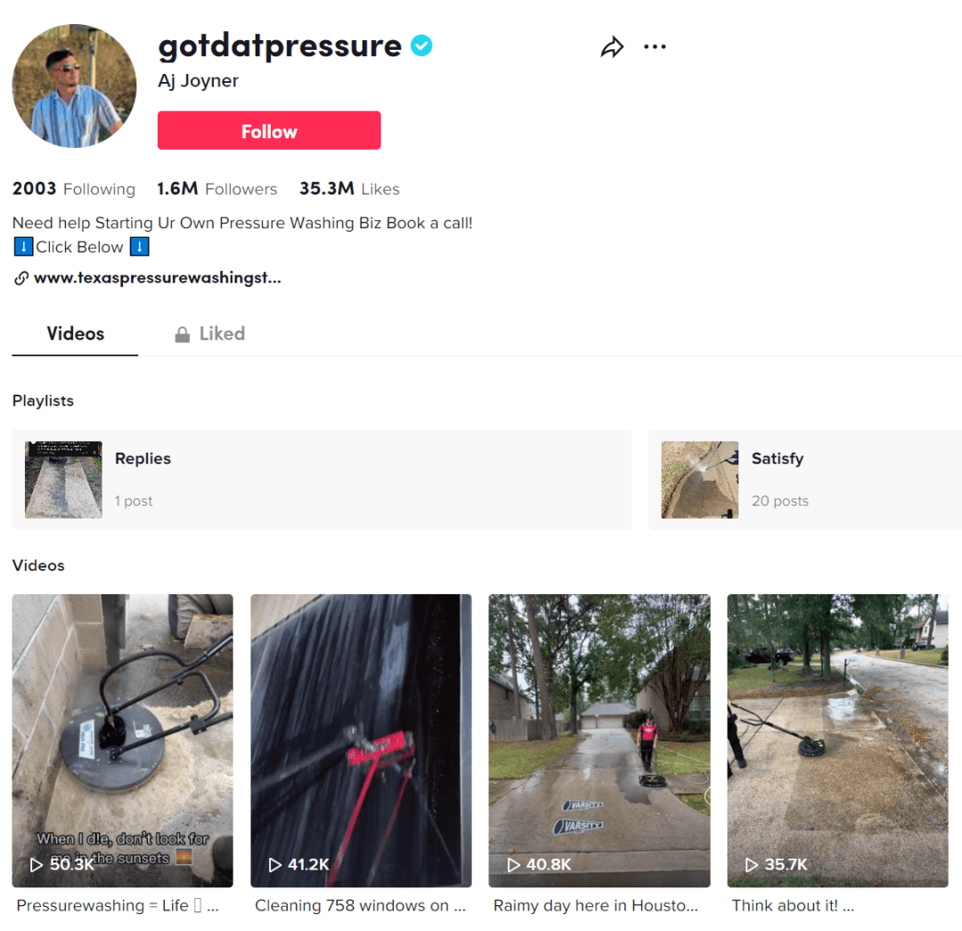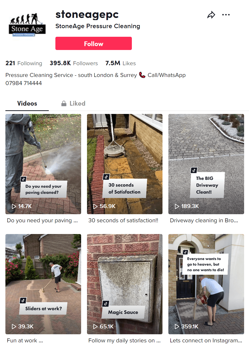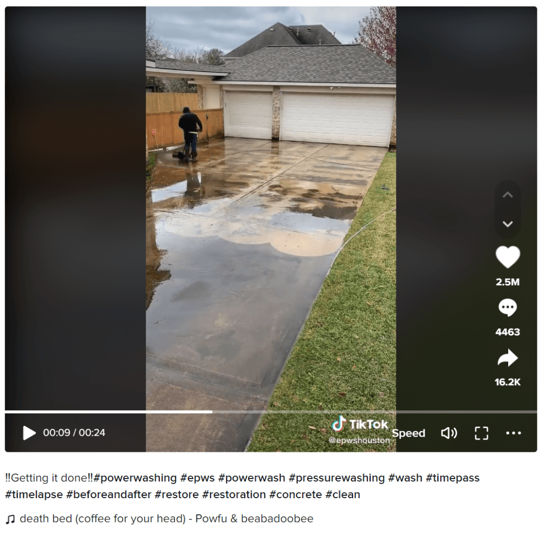 这位来自伦敦的高压清洁小生意主将自己工作过程录制下来,视频速度加快后剪辑而成。极低的内容制作成本,却收获了近 40 万粉丝和 7 百多万的点赞。