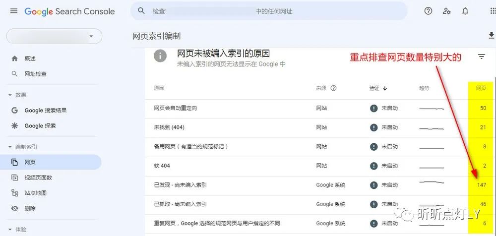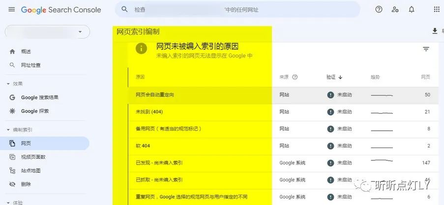 #1 通过路径:Google Search Console -> 编制索引 -> 网页 -> 所有已提交的网页 -> 未编入索引 -> 原因