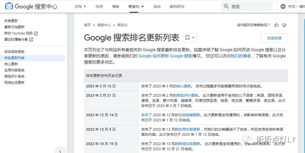 #2 打开Google 搜索排名更新列表,看看谷歌这段时间是否推出/更新了算法,我的网站是不是刚好有些行为明显触犯了算法?