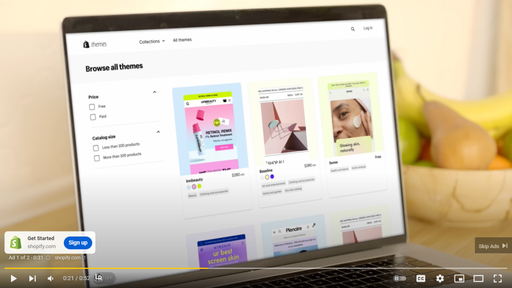 广告很简单的介绍 Shopify 这种 SAAS 建站平台的优势,及其现在的用户规模,给你传递的观感就是,使用 Shopify 建站能极大程度的解放你的业务。这样的广告看一次也就算了,但是我真的每天都能看到这样的广告,广告素材可能不一样,但是宣传内容都是 Shopify 建站。