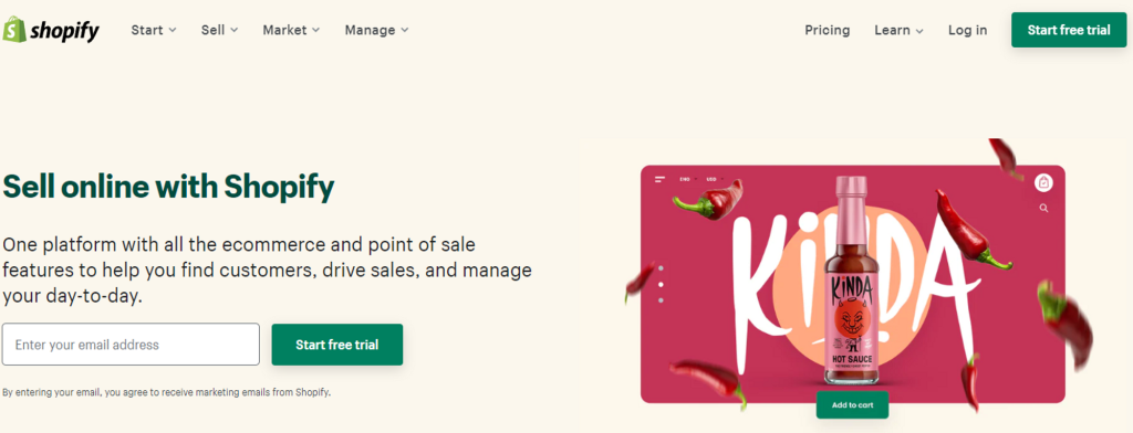 点击注册按钮后,很自然便跳转到了 Shopify 的官网。要是不明所以的人看这个流程,肯定觉得很正常,就是 Shopify 官方的流量投放活动。