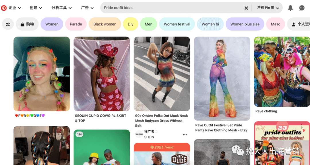 在关注骄傲月的用户群体中,有这样一些搜索词被高频地使用:Pride nails、Pride makeup、Pride outfit ideas、Pansexual pride,我们卖家可以通过搜索这些关键词来获取素材制作灵感。