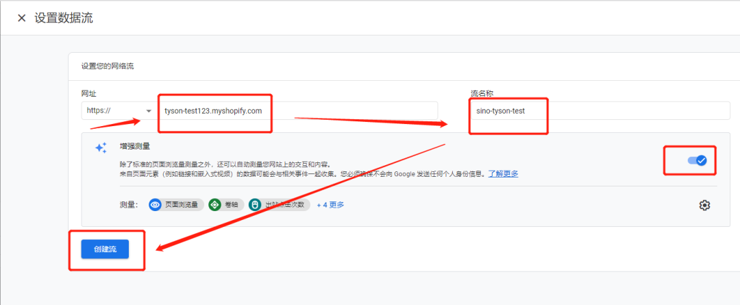 7)输入网址以及数据流名称后,点击“创建数据流”。