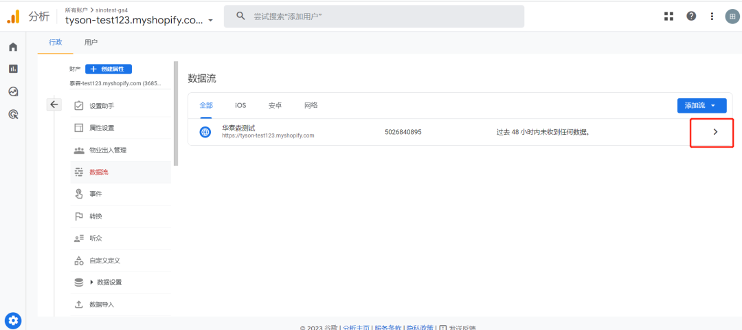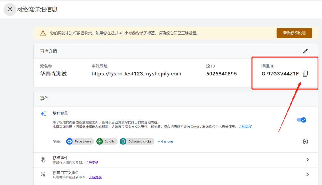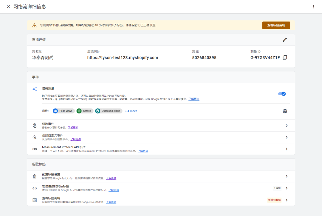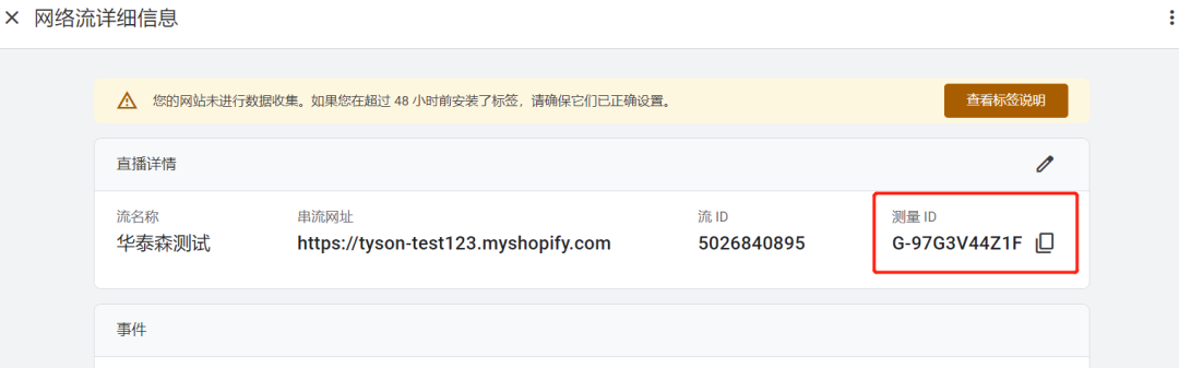 10)GA4账户资源已创建成功,可在【资产】-【数据流】检查配置的详细信息。
