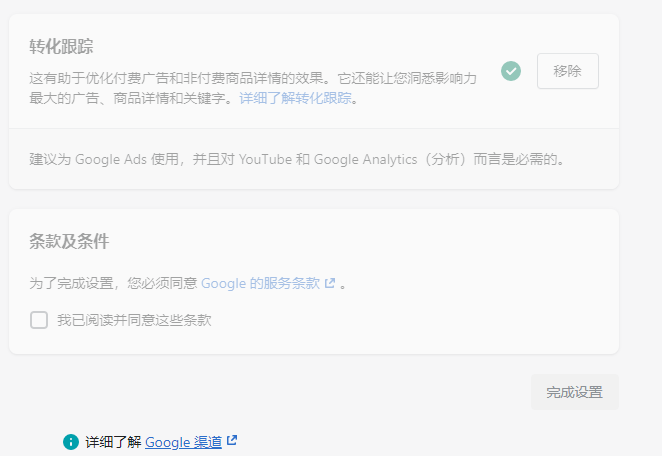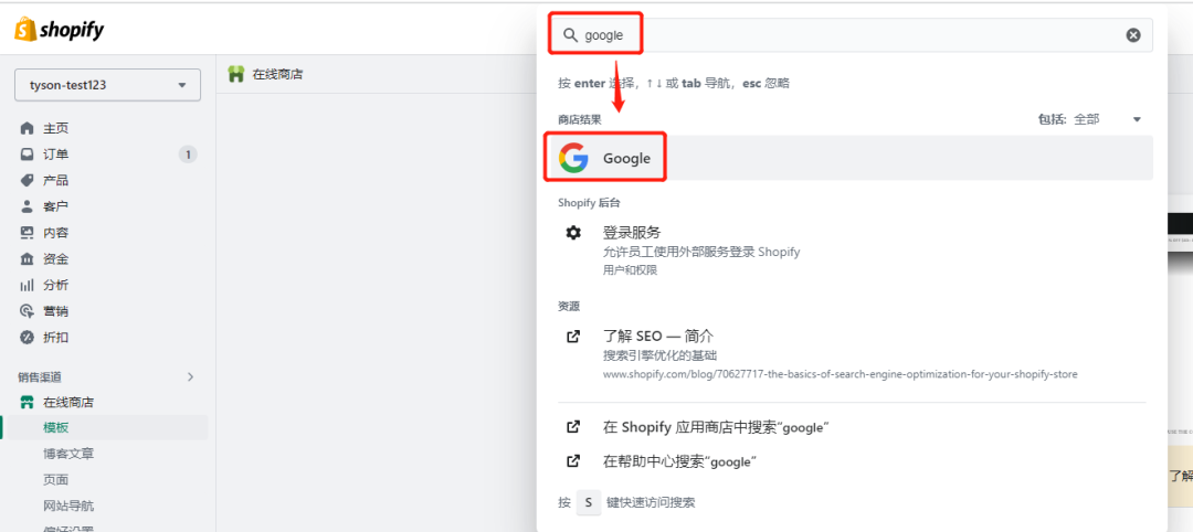 1)在Shopify在线商店搜索通过 Google 渠道应用进行访问。