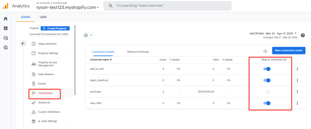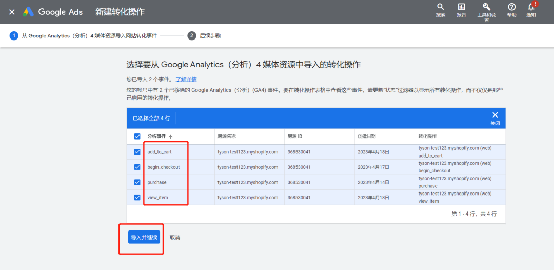 注:只有在GA4中标记为转化的事件,才能导入到ADS内,新事件需要一些时间(24小时内)才会显示在 Google Analytics(分析)中。最多可以将 30 个事件标记为转化。