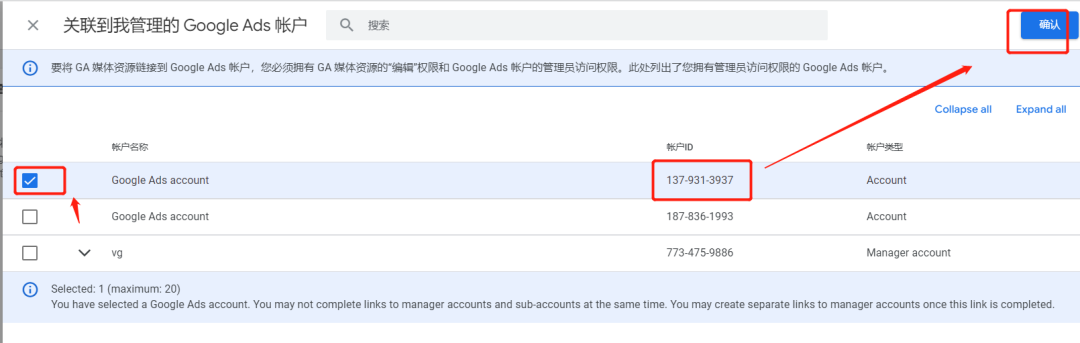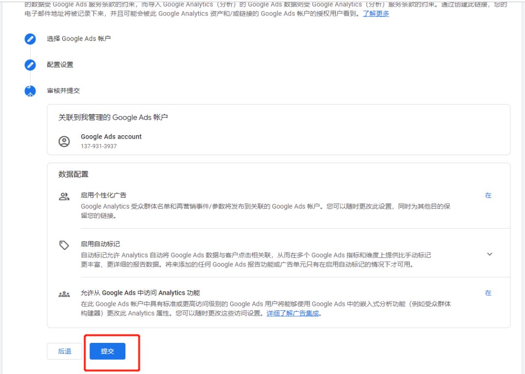 注:关联的媒体资源需和GA4数据流内的测量ID一致。