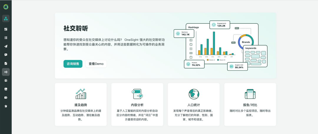 在海外社媒内容传播过程中,效果监测、营销活动分析、实时监控、定期收集用户及潜在消费者的见解、建议和意见都是必要的,以上工作均可借助OneSight营销云进行: