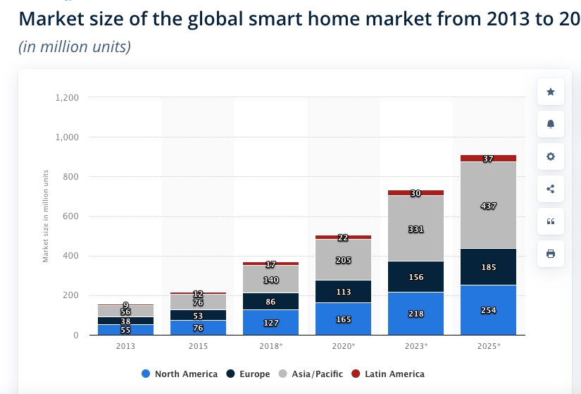 智能家居一直以来都是全球电子消费的重要组成部分。据Statista数据,到2026年,全球智能家居活跃家庭(家庭中拥有一台 AIoT 即人工智能物联网设备,且每天都在使用)的用户数量预计将达到5.737亿。