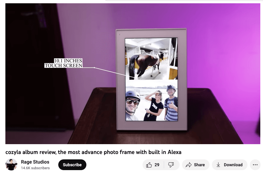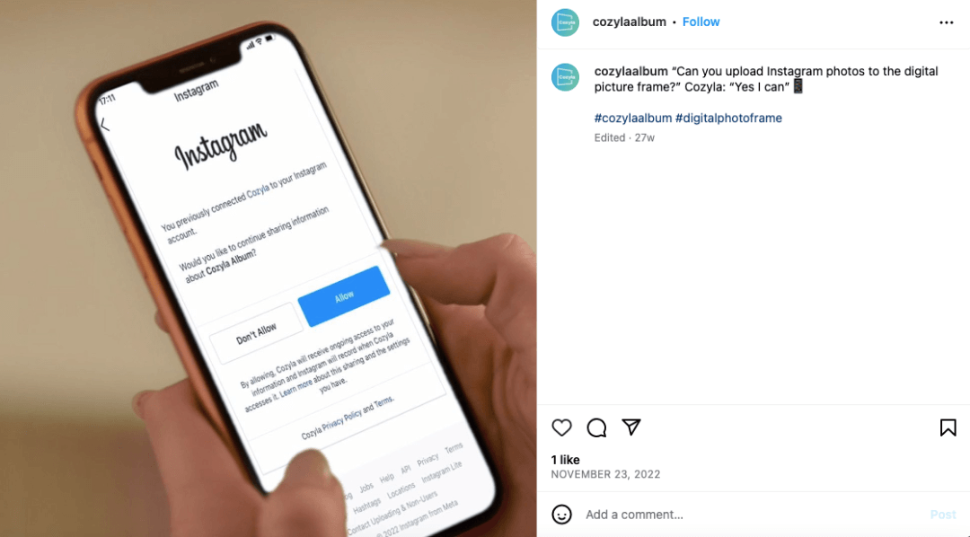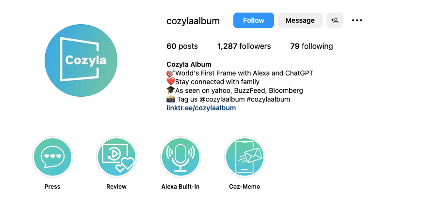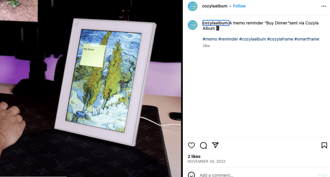另一方面,Cozyla打通主流平台体系,相框可与 Google Photo、Instagram 和品牌自有 App「My Cozyla」同步。
