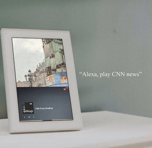 同时也是市面上首款内置亚马逊 Alexa 语音助手的智能相框,只要呼唤alexa,用户便可建立便签/语音备忘录、播放歌曲、通知紧急联系人等功能,非常适合老年父母关怀场景。