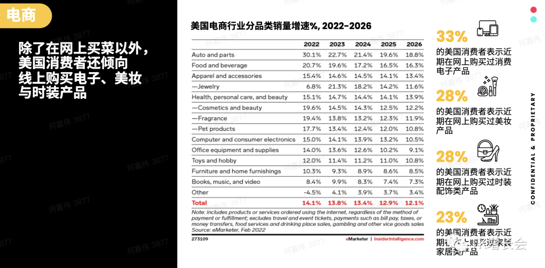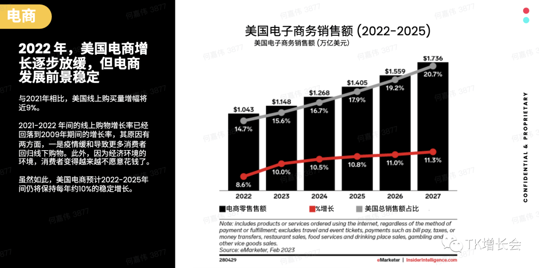 2022 年,美国电商增长逐步放缓,但电商发展前景稳定,与2021年相比,美国线上购买量增幅将近9%