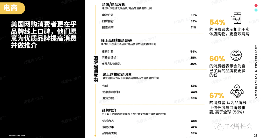 三、美国网购消费者更在乎品牌线上口碑,他们愿意为优质品牌提高消费并做推介。
