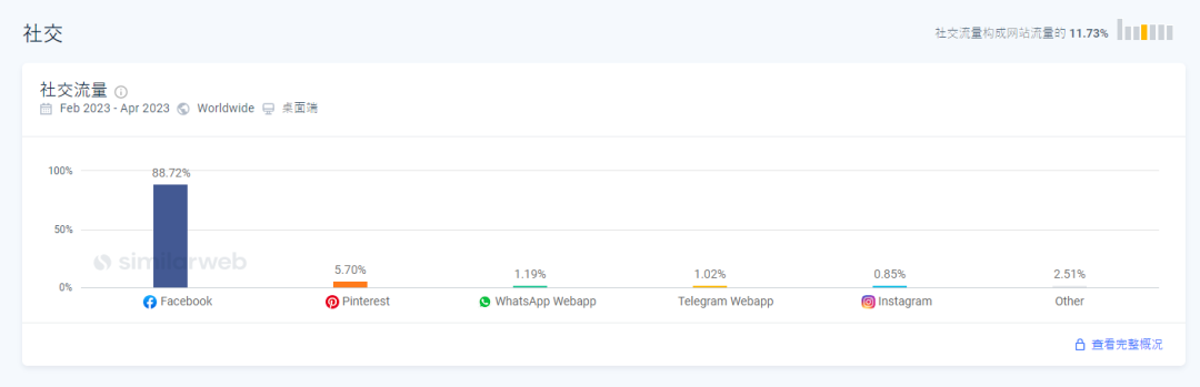 从Similarweb数据可以看出,在最近3个月中,PatPat社媒流量来源中仅Facebook单个渠道的占比就高达88.72%。