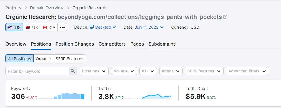 进到这条具体的链接,你会发现这个页面参与排名的关键词有 306 个,共计能从谷歌自然搜索获得 3.8K 的流量。此处重点注意一下,点进“Keywords”里面去,去看看这个页面的排名关键词,去发现那些低竞争的,且流量还不错的那些关键词。照着去做就好了,没什么太大的难度。