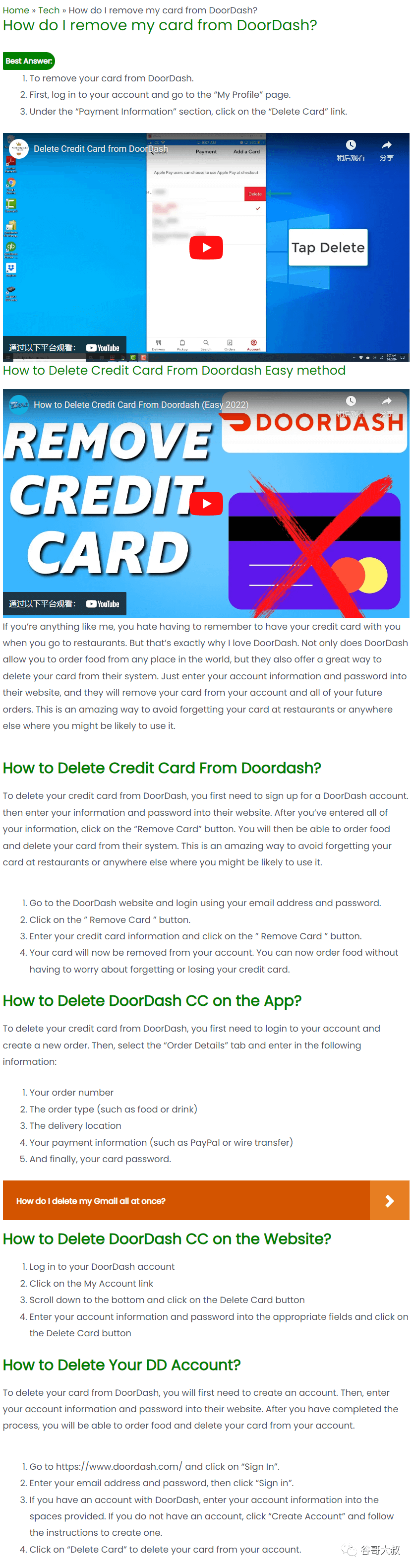 第一感觉就是AI生成或爬虫抓的,既然是内容生产成本很低的,能搞1个,肯定会搞1堆。当你复制“How do I remove my card from DoorDash?”等等长尾词去谷歌里面搜索,你会发现一堆类似的网站,点开之后,嗯,像是一个妈生的。