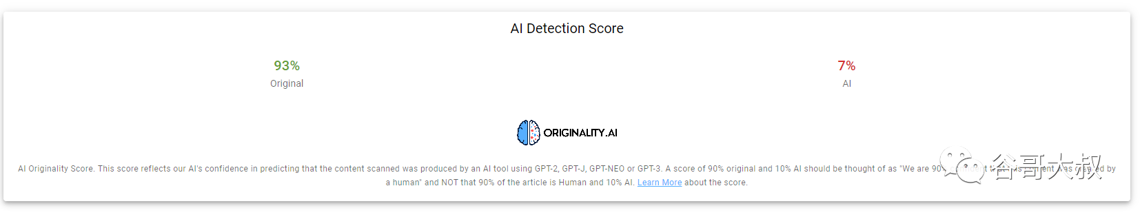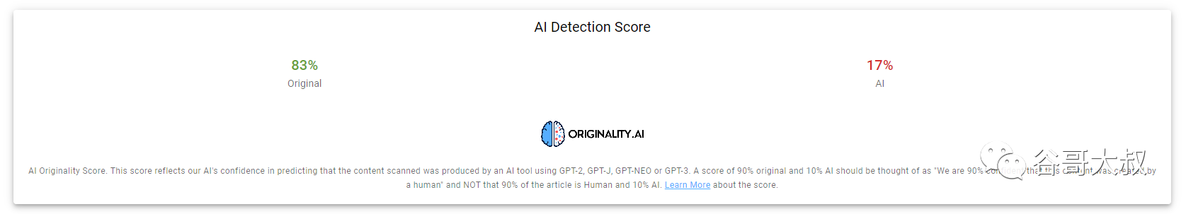 考虑到我自己其中1个网站排名从去年末开始流量下滑5成,一直找不到具体原因,前几天对全站的所有文章进行了检测,发现有大量的文章被originality.ai判断8成概率是AI生成,看来是被谷歌惩罚了。