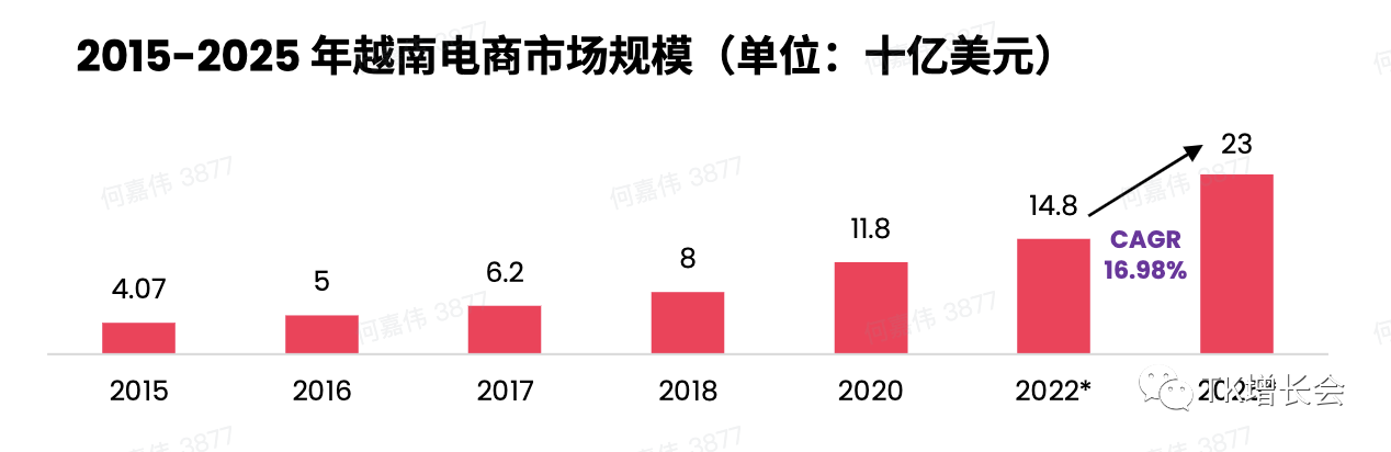 得益于人口增长和智能手机的普及,预计到2025年,越南电商市场规模将达到230亿美元。