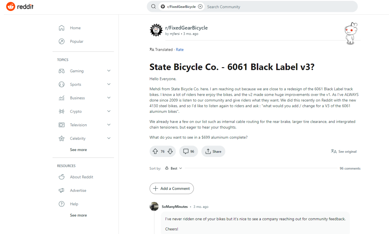 发布优惠券、新品信息、主动寻求社区反馈等,是State Bicycle Co论坛营销的主要策略。这不仅能为其带来直接流量,还能提升潜在用户的好感度。