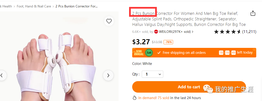 这个网站是通过谷歌广告竞价来引流的,产品也是针对脚的,大拇指矫正,这种单网页的,我之前的文章也介绍过,我自己也一直有在跑,往往很便宜的产品可以跑出高利润,大家感兴趣不妨看下我挺久之前的单网页实操公众号分享的文章。