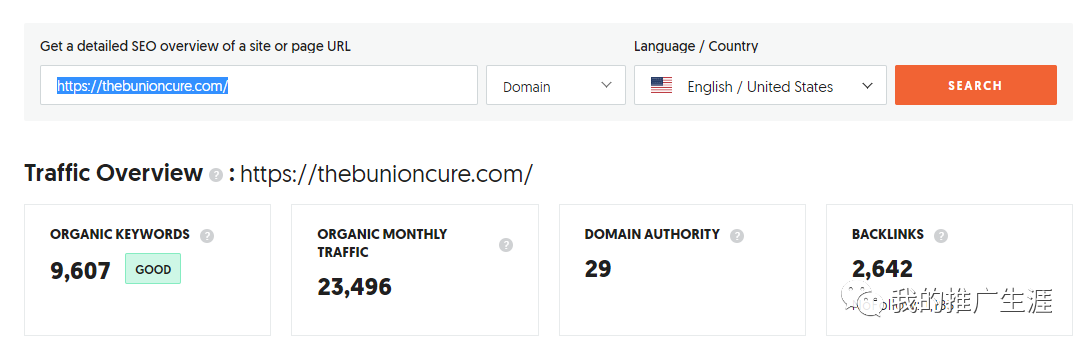 这个网站是专门针对脚部的bunion症状的,也算是一个非常细分的网站了,上个月从谷歌获得了2.4万左右的自然访客人次。