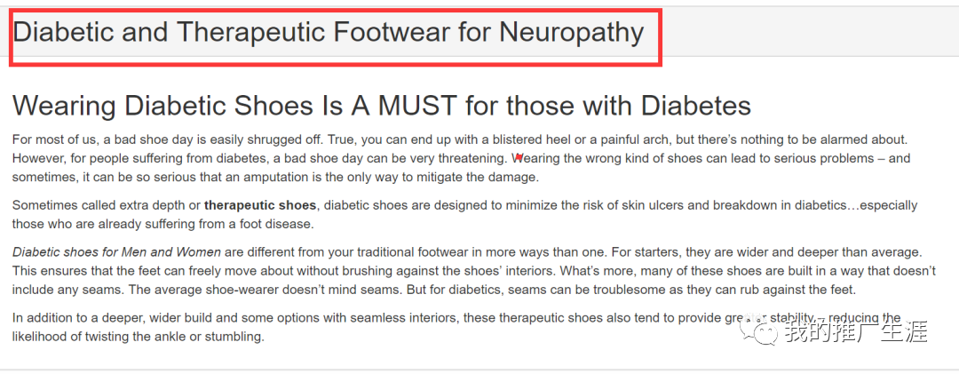 这个网站主要是卖各种鞋子的,而且不是一般的鞋子,都是专门针对各种病痛的。例如下面这个产品类目就是专门针对糖尿病的鞋子,说实话可能是我太孤陋寡闻了,真的第一次看到还有可以治疗糖尿病的鞋子,注意了diabetes shoe(糖尿病鞋子)在美国市场的谷歌月均搜索量超过4万的,可见市场需求很不错的。