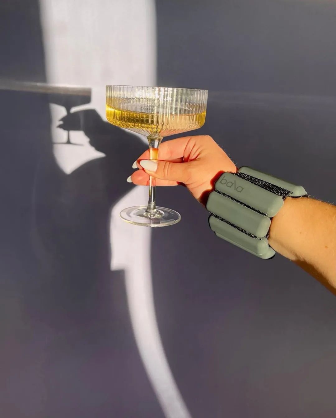 Bala Bangles 由回收不锈钢一体成型,外壳由母婴级亲肤、防水防汗的硅胶材质包裹,其符合人体工学的黏贴设计支持手脚通用,取代了传统小重量哑铃需手持、易掉落的不便性。