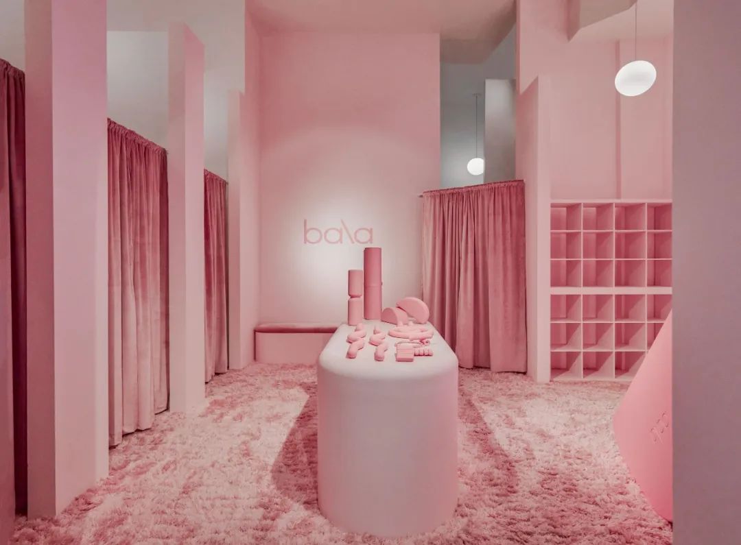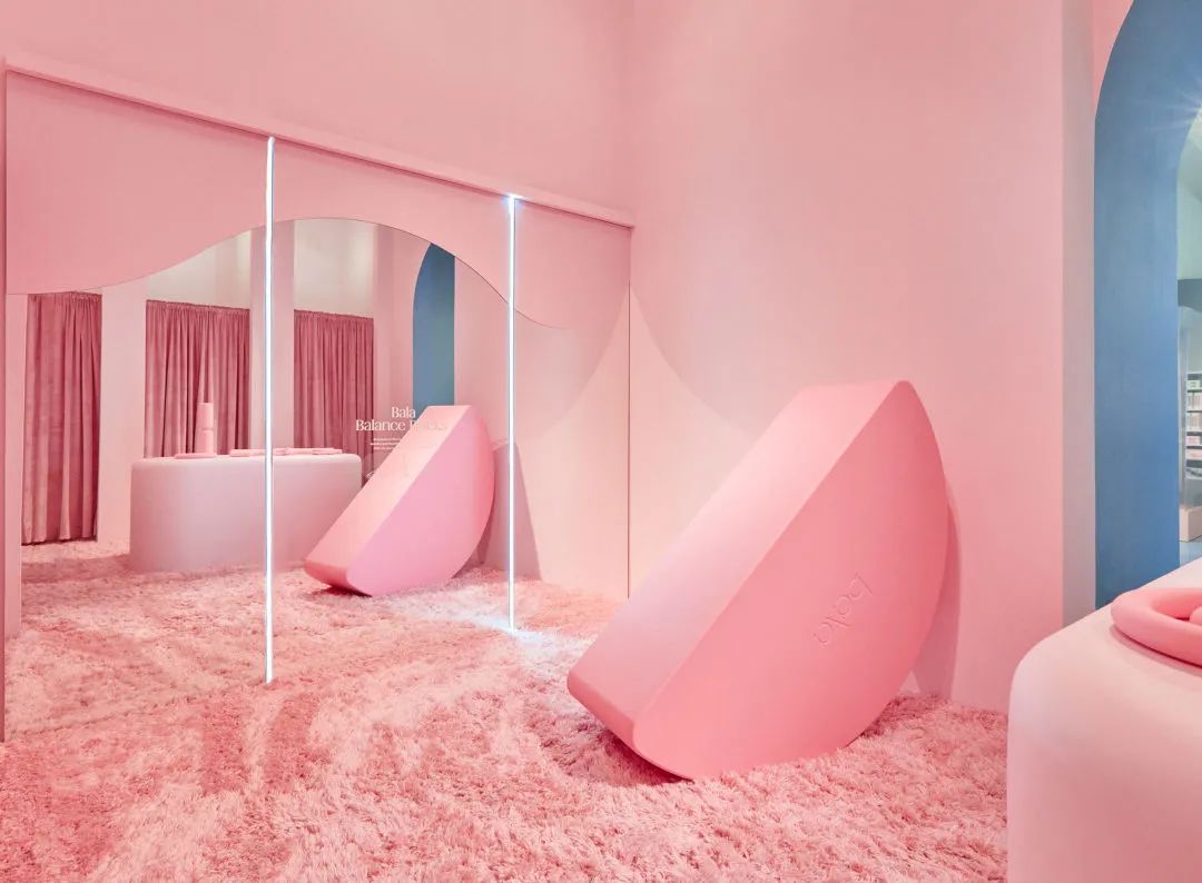 Bala 将触觉体验的高潮设置在了一个被粉色笼罩的房间里,游客可以触摸毛茸茸的地毯和天鹅绒窗帘,在这里获得玩乐般的健身体验,这也是该品牌的差异化所在。