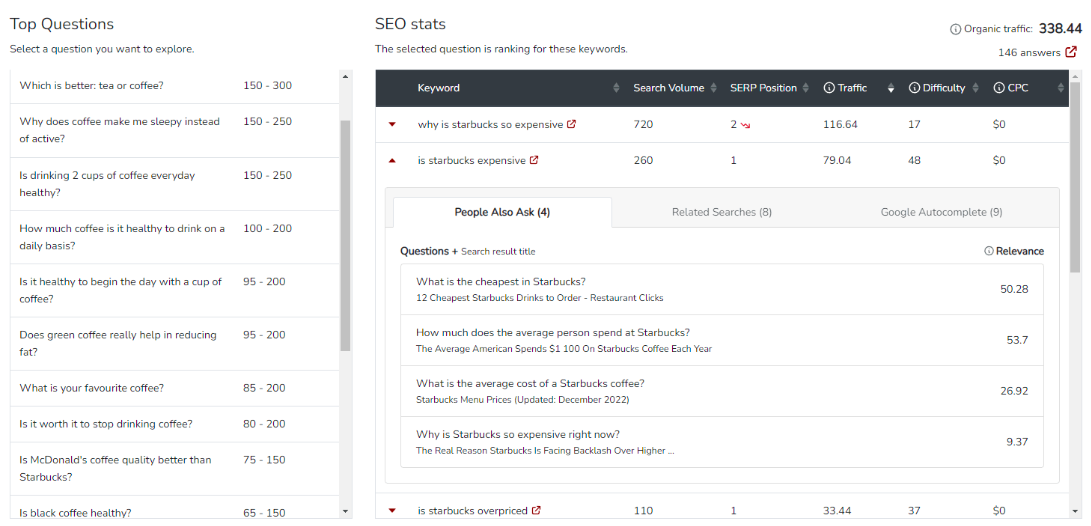 这款工具也属于数据挖掘再整合软件,通过爬取谷歌搜索的“People also ask”、“Related Searches”、“Google Autocomplete”等区域的数据,形成自己的数据库。再将爬取来的数据清洗、整合,再展示出来,极大的缩短了我们调研的时间。