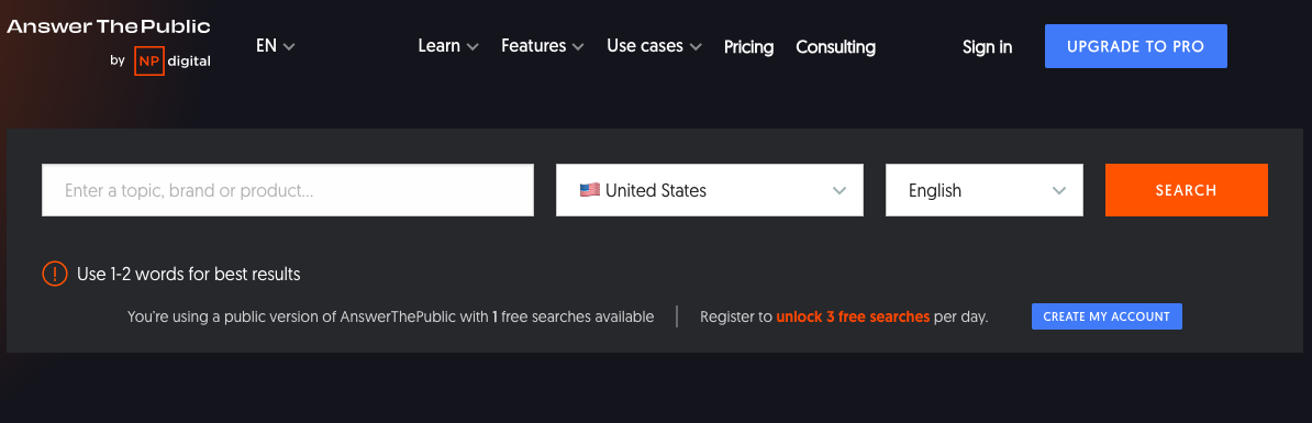 第三个推荐的方法,我就要说说知名的“Answer The Public”。