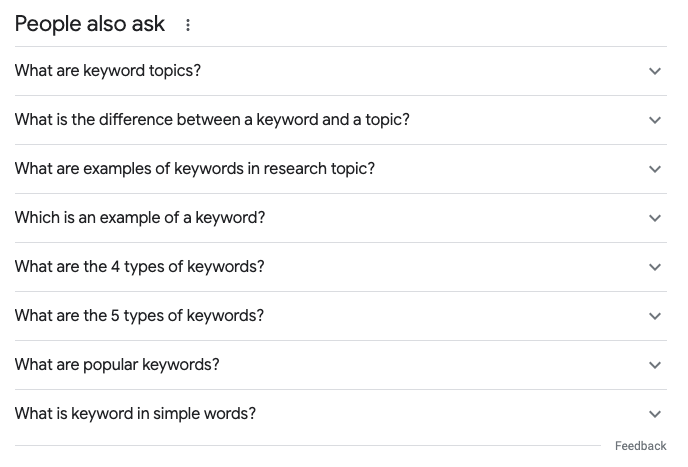 第一个常见的方法就是谷歌搜索结果页的“People also ask”。